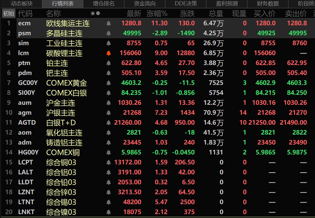 隔夜贵金属方面:COMEX黄金涨2.4%,盘中刷新历史新高至4640.5美元/盎司;COMEX白银涨7.33%,盘中刷新历史新高至86.34美元/盎司。内盘贵金属方面:沪金主连涨1.31%,盘中刷新历史新高至1035.4元/克;沪银主连涨7.23%,盘中刷新历史新高至21518元/千克。