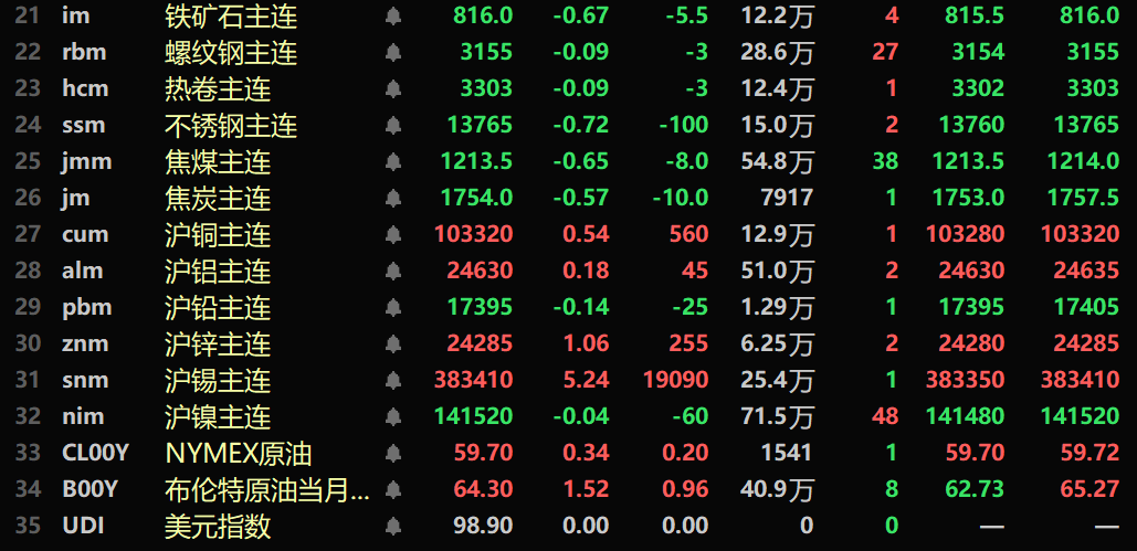 隔夜黑色系均飘绿,铁矿跌0.67%,不锈钢跌0.72%,螺纹钢跌0.09%,热卷跌0.09%。双焦方面:焦煤跌0.65%,焦炭跌0.57%。