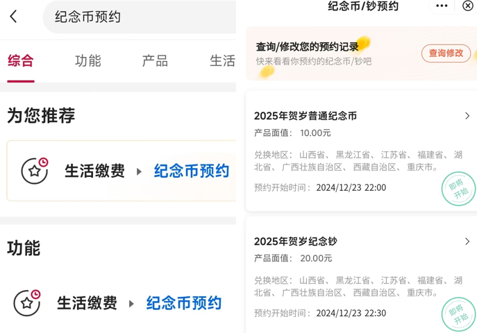 预约流程就是先看一下自己地区的银行,在规定时间(蛇年纪念币22:00开抢!蛇年纪念钞22:30开抢!记得订好闹钟!)