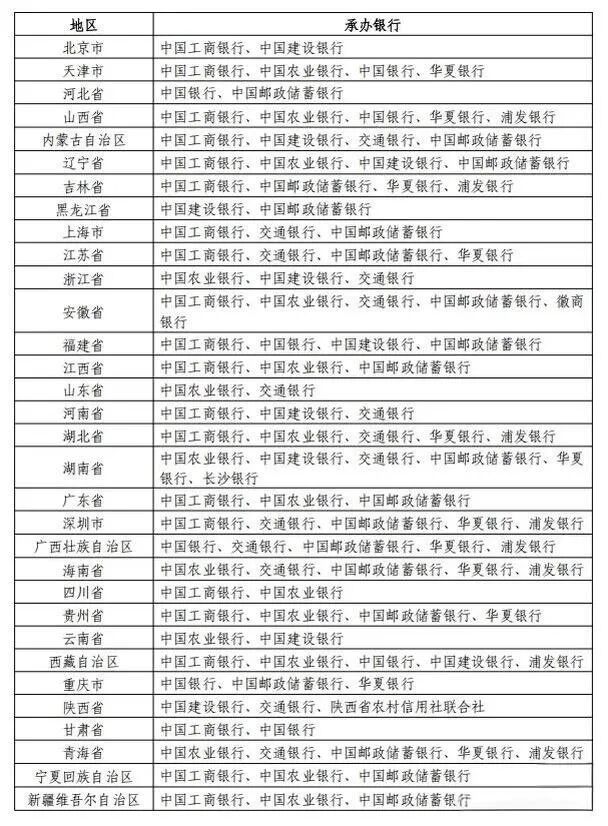 各地区预约承办银行具体安排如下: