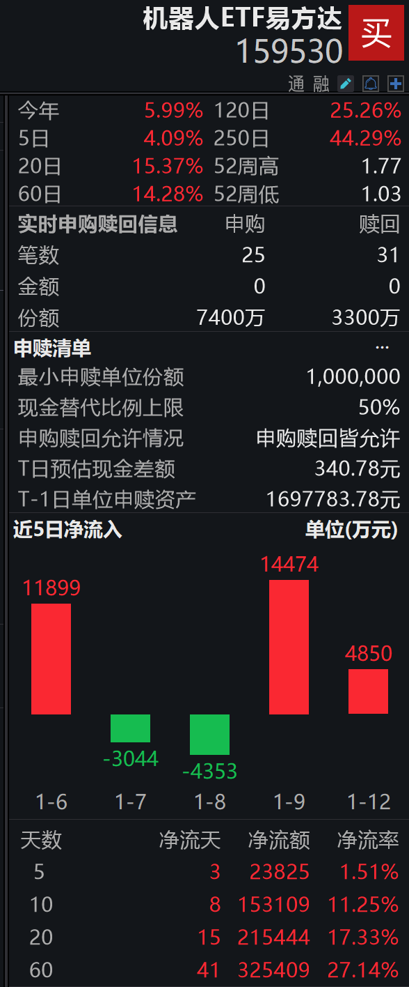 机器人ETF易方达(159530)场外也有基金份额:(联接A:020972、联接C:020973)。