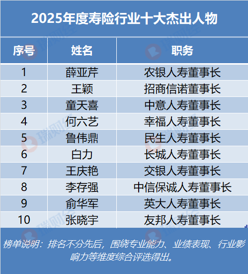 “2025年度寿险行业十大杰出人物”榜单围绕专业能力、业绩表现、行业影响力等维度综合评选得出。