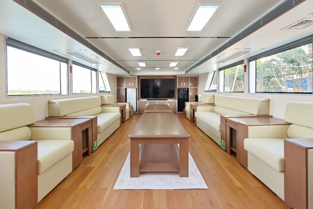 该船采用先进的钢铝复合结构,总长33.0米、型宽6.0米、型深3.2米,搭载双机双桨推进系统,最高航速可达23节,兼具卓越的适航性与灵活的操纵性能,可从容应对近海复杂海况。船尾甲板配备专用快艇,实现快速响应与机动执法,提升执法效率。交付后,该船将承担温州近海辖区日常巡航、事故应急处理、海上防污应急及恶劣天气水上安全监管等任务。
