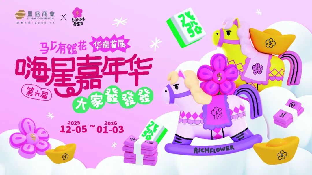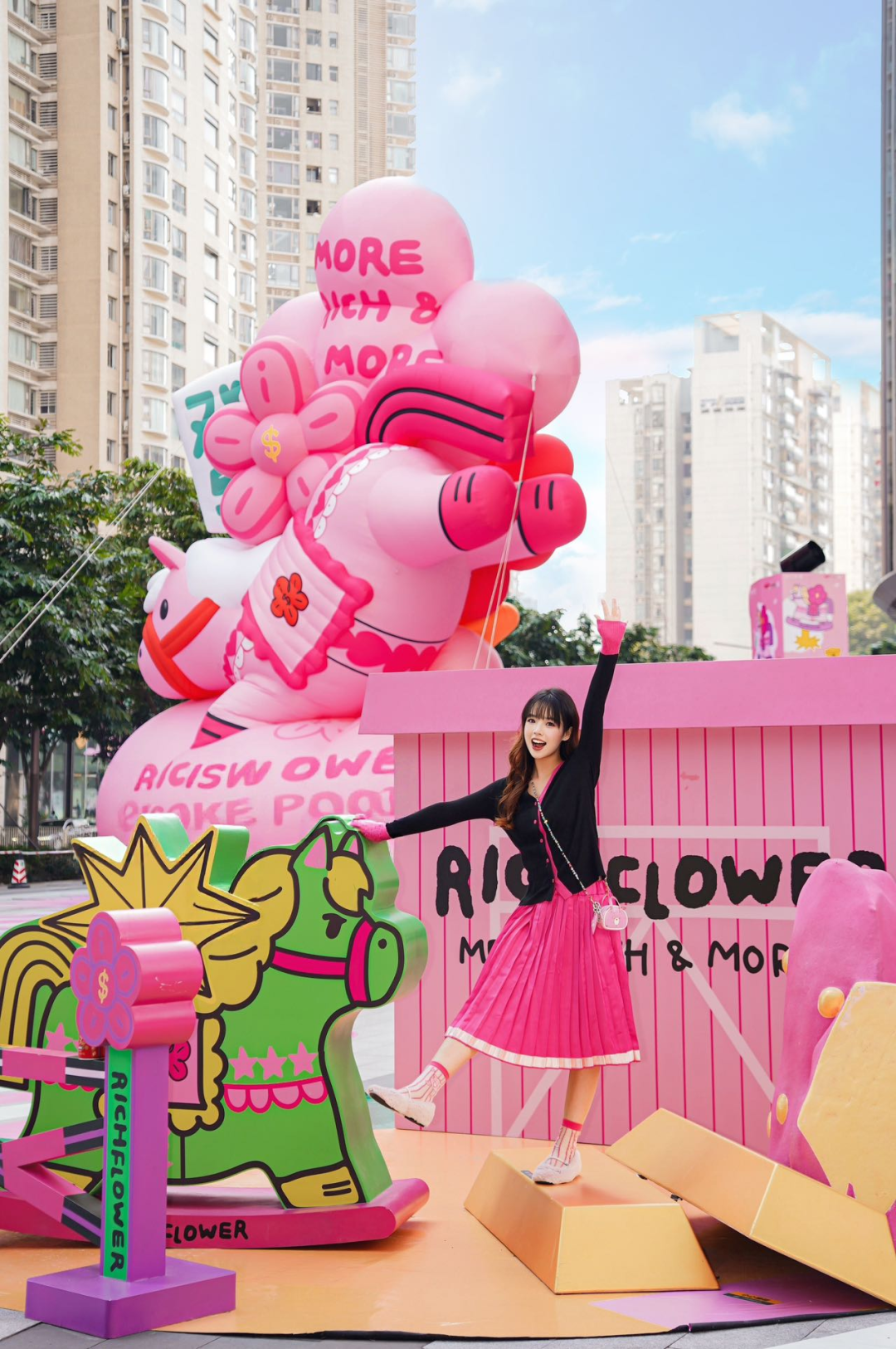 这一次,嗨星嘉年华选择了与潮流艺术家李昱昱共创,以其代表作“有钱花”为创作基底,结合马年吉祥语,共同推出了年度艺术主题展——「马上有钱花」。此举正是基于对年轻消费心理的深刻洞察:
