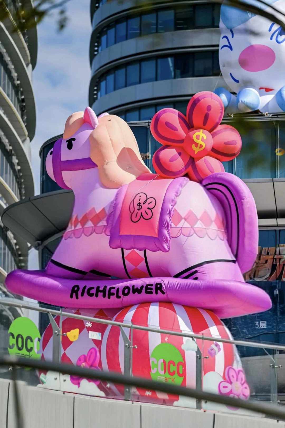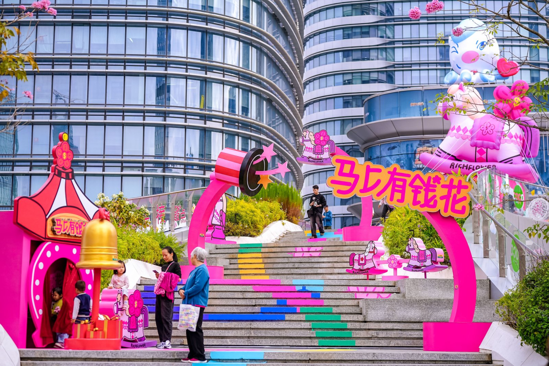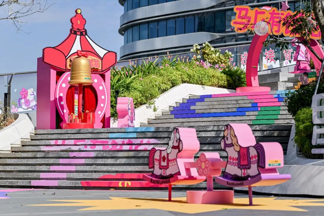 龙岗星河COCO Park则特别搭建了一个200平的好运花园,设置摇摇马、花花躺椅等轻互动设施,营造出自在漫步、惬意打卡的松弛场景。