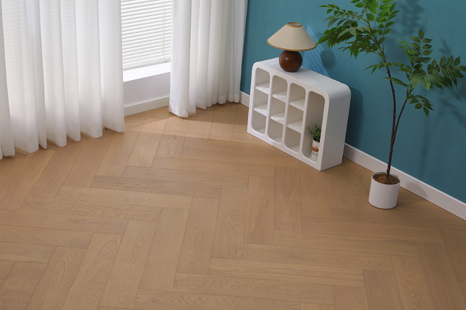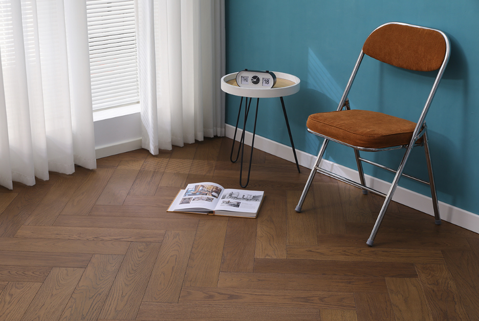环保性能筑牢健康底线,通过ENF级环保认证,甲醛释放量低至0.022mg/m ,远超国标要求,即便冬日密闭空间也能安心使用。在风格适配性上,多元铺装工艺满足不同家居表达:人字拼利落流畅,为极简与轻奢空间勾勒流动线条;鱼骨拼复古雅致,为法式与侘寂风奏响时光韵律;拼花地板则以艺术构图,让复古之家成为承载格调的美学空间。