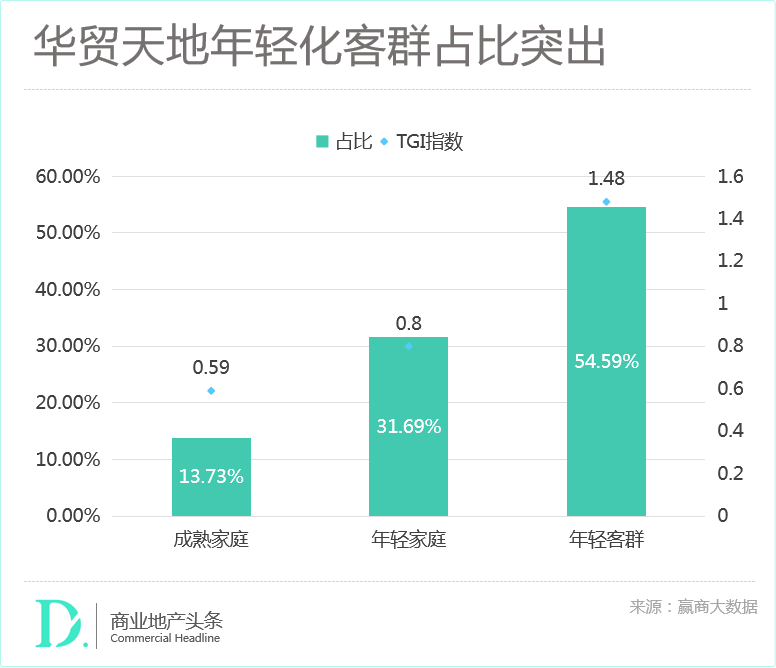更难能可贵的是,华贸天地读懂了惠州的“年轻力”。据赢商大数据,项目年轻人及年轻家庭的到访占比高达86%,其中19-34岁的核心客群占比68%。其年轻客群占比的TGI指数高达1.48(以100%为行业平均基准),远高于城市均值;同时,异地客群占比达26.9%,形成跨区域消费影响力。这些年轻客群,是新消费、体验经济、社交媒体传播的核心力量,他们追求个性、注重体验、渴望共鸣。