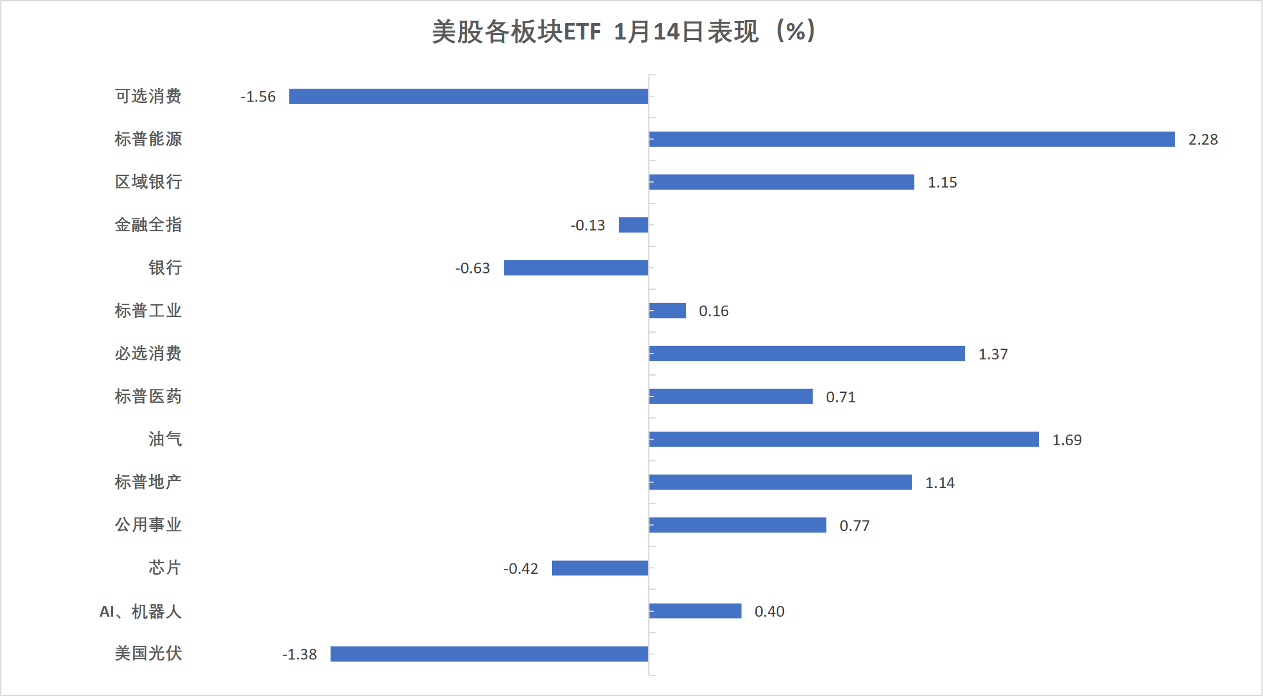 三大美股指进入2026年来首次两连跌,其中纳指跌1%、创近一个月最大跌幅;技股拖垮大盘,“科技七巨头”齐收跌,微软、亚马逊、Meta跌超2%;芯片指数止步三连涨,博通跌超4%;尽管四季度业绩优于预期,美国银行和花旗仍分别收跌近4%和超3%,四季度利润逊色的富国银行跌超4%。中概股携程跌17%。