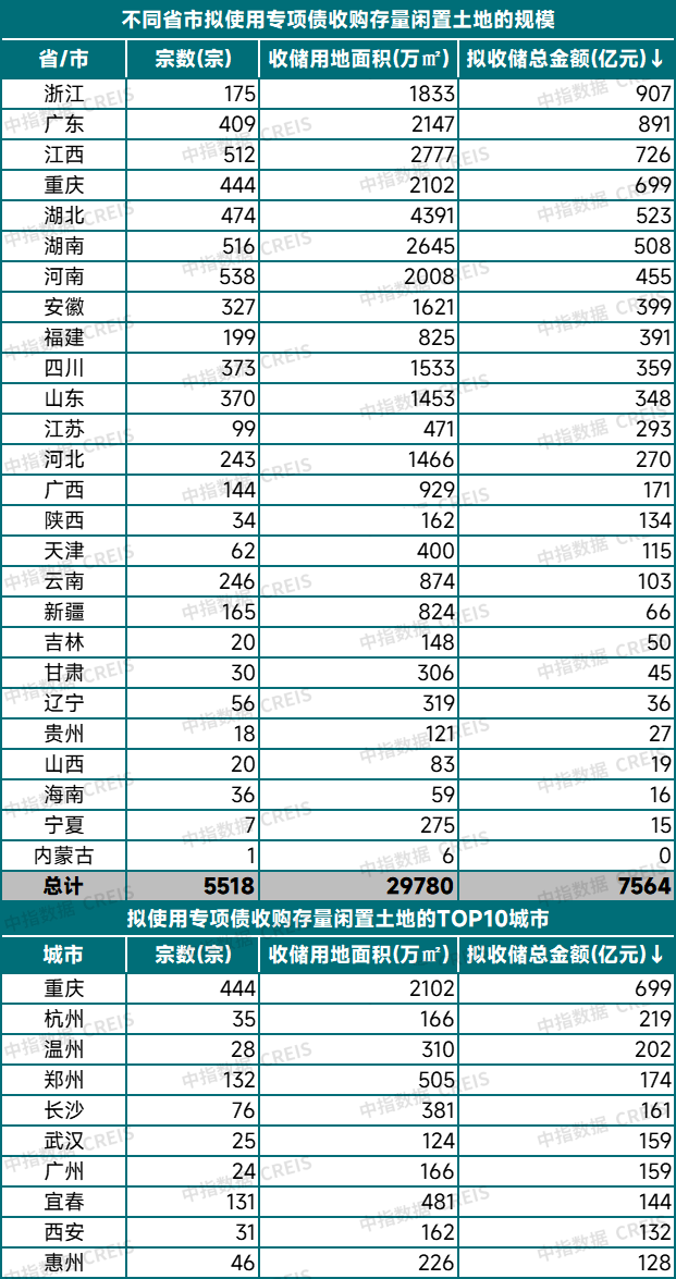 公示情况:各地公示拟使用专项债收购存量土地金额超7500亿元,浙江为拟收储规模最大的省份