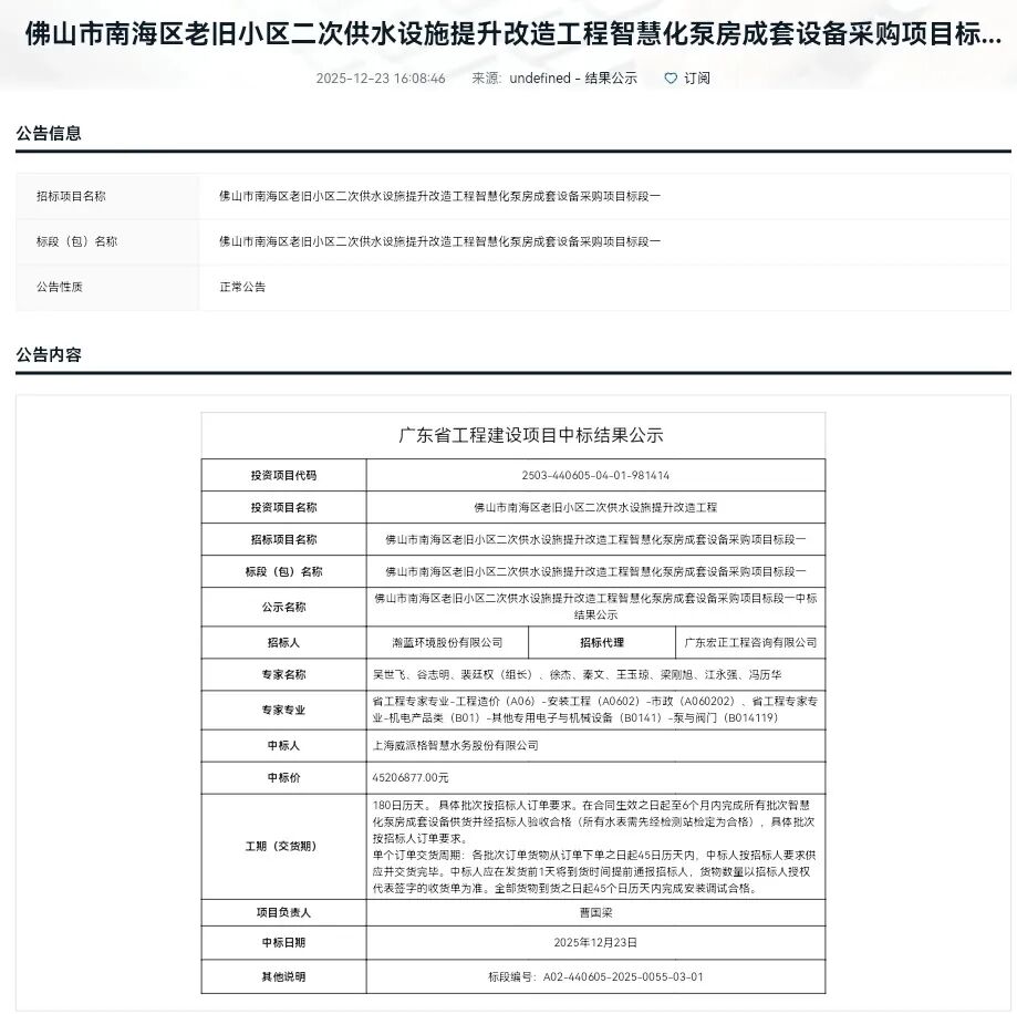 新年伊始,捷报频传!上海威派格智慧水务股份有限公司凭借雄厚的技术实力、卓越的产品方案与丰富的项目经验,在佛山和嵊州的激烈角逐中脱颖而出,成功中标!这是威派格在 2026 年收获的开门红,更是市场与客户对公司智慧水务解决方案的高度认可。