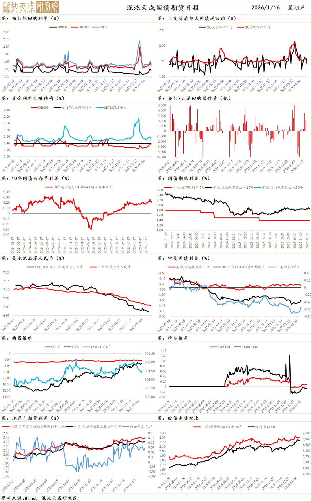 早盘,债市情绪偏暖,长端收益率全线下行。随后股市走强,债市承压。午后,央行宣布结构性降息25bp,国债期货快速拉升,10年国债收益率一度触及1.835%低点。但随后公布的12月社融数据超预期,叠加央行表态“10年国债收益率稳定在1.8%-1.9%”,市场解读为利好出尽,止盈盘涌出,现券收益率快速反弹并转为上行。3点后,收益率维持高位震荡,全天10年国债收益率下行0.3bp,30年国债收益率下行0.05bp。