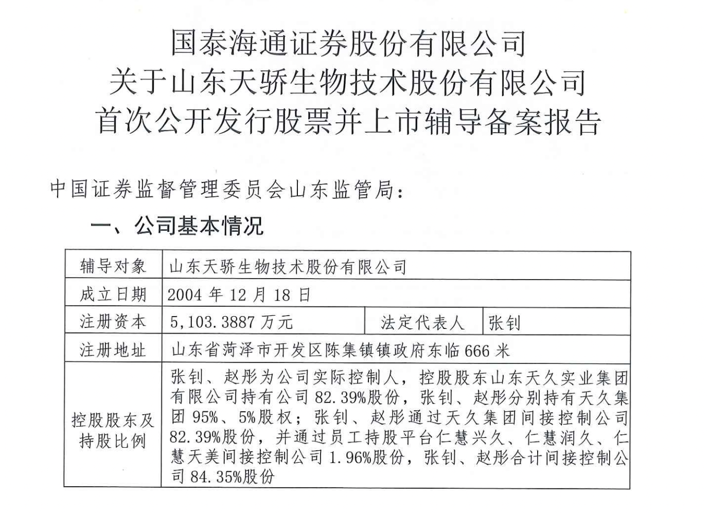 瑞财经 刘治颖 1月12日,山东天骄生物技术股份有限公司(以下简称:天骄生物)在山东证监局完成IPO辅导备案,拟A股上市,辅导机构为国泰海通证券股份有限公司。