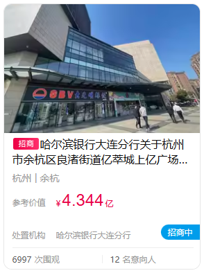 近日,杭州良渚上亿广场在资产交易平台上短暂上线,启动公开转让询价,但不久后相关信息便被撤下。