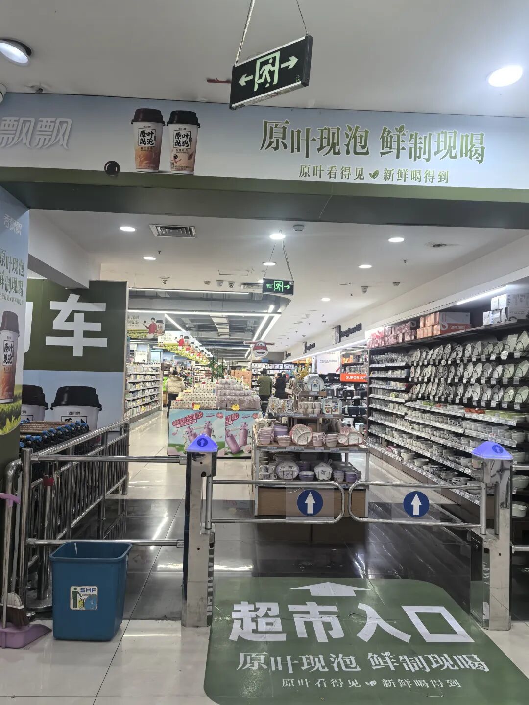 地下一层的超市,人流量还稍微多一些,门口的小铺位招商率也比商场内的其他地方高很多,但是也大多以便民的业态为主,像儿童平价服饰、快速剪发等。