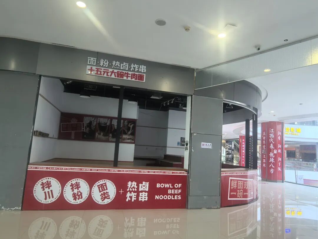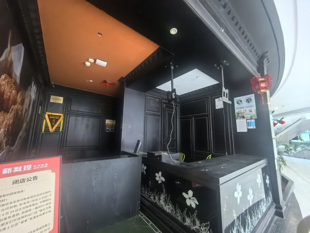 更离谱的是,早在今年4月24日就已经退租的烤匠、新发现等连锁餐饮,商场都没有用围挡遮挡,直接裸露在商场内部,可以看到里面桌子已经搬空,电线也耷拉着,蒙着厚厚的一层灰,让人观感非常不好。