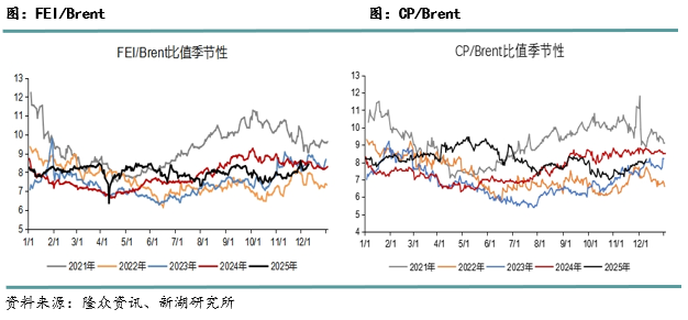 今年特朗普上任后,多次对中国加征关税。4月份美国将关税增加至125%,中国也对美国加征125%关税。国内贸易商一方面增加对中东的现货采购,另一方面将手中的美国合同货与日韩等其他国家的贸易商进行交换,因此4月至5月,CP与Brent比值较强。5月份,中美双方达成暂停90天加征关税的协议,贸易战阶段性缓和,但贸易商仍然持谨慎态度,偏好中东货,因此4月至7月,FEI与CP价差虽有收窄,但仍为负值。8月和9月,虽然是燃烧淡季,但贸易商已经开始为燃烧旺季备货,因此液化气与原油比值走强。为抢占市场份额,沙特公布10月CP价格下跌,出乎市场意料,FEI、PG均跟随走弱。不过随着燃烧需求增加、中东发货延迟,外盘基本面表现较强,液化气与原油比价再次转强。截至2025年10月,美国货占中国进口量已经下降至23%,但仍需留意2026年初美国寒潮天气对码头出口的影响,若码头受到寒潮冲击,这将带动FEI上涨。现阶段中东的延迟发货不可持续,2026年上半年,中东供应有增加预期,届时需留意PDH需求和供应增量的错配行情。