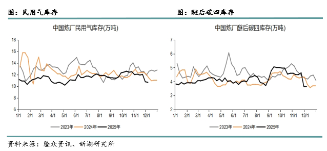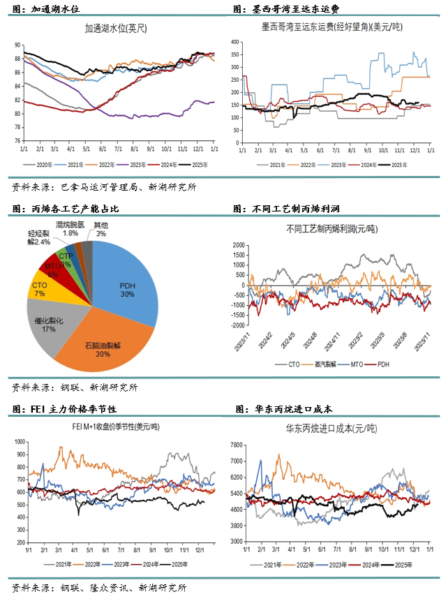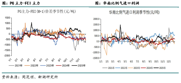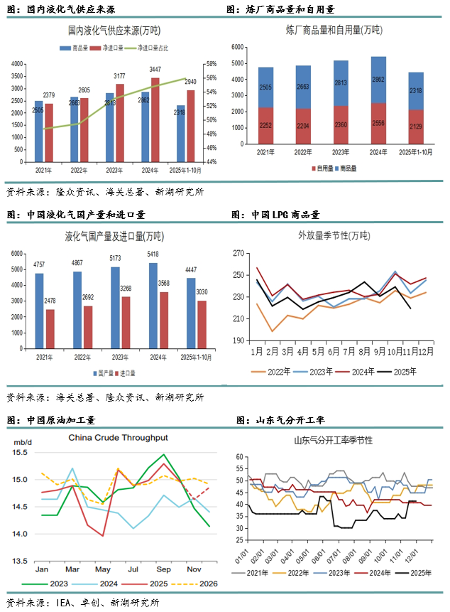 2026年,中东供应有增加预期;中美在2025年11月达成协议,将当前的关税政策展期一年,因此2026年1-11月,关税的不确定性大幅降低,中国贸易商对美国货的采购可能维持现有水平。根据当前统计的化工新装置,2026年化工需求增量主要体现在PDH装置和异丁烷脱氢配套的MTBE装置,新投产的装置主要是炼化一体化的配套装置,考虑到装置利润和产能过剩问题,这将挤压独立的、老旧装置的开工,因此对于明年的化工需求增量持谨慎态度。2025年尚未解决的俄乌冲突,将继续扰动2026年的油价,虽然原油存在供应过剩问题,但在地缘、SPR补库预期下,油价仍然有较强的反弹驱动,这或将推动进口成本上移,国内PG行情还需考虑仓单注册节奏。