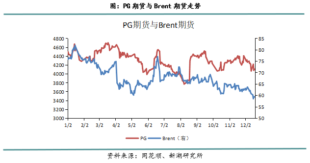 10月以PG期货大幅下跌开始,一方面是沙特CP下跌,进口成本下降,出乎市场意料;另一方面,国庆假期后,炼厂积极出货降库,基本面较弱。大跌之后,PG期货开启了持续的估值修复行情。11月下旬,中东供应收紧,1月份阿联酋部分船期推迟,2月份科威特的船期也有推迟,在外盘带动下,PG期货继续上涨。12月中旬,欧洲柴油裂解回落,需求端缺乏支撑,原油价格中枢下移,PG期货受此拖累。