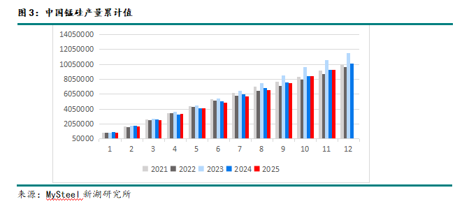 本年度锰硅供给延续过剩态势,但这种过剩已成为行业的常态化表现。截止2025年11月份,锰硅产量累计值928.29万吨,超2024年产量926.07万吨约0.14%,总体呈现稳步上升的态势。
