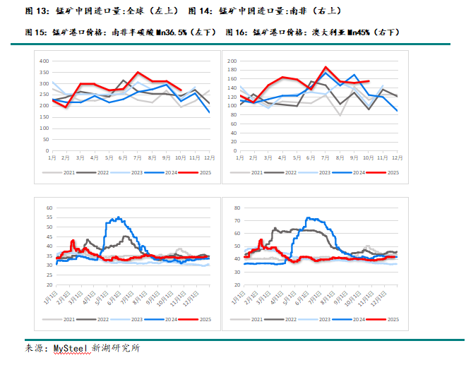 当前市场已形成成熟的富锰渣替代高品位矿石的技术方案,锰矿供应的边际变化对合金价格的传导弹性显著减弱。同时,南非矿的充沛供应潜力也为市场提供了有效的心理缓冲。