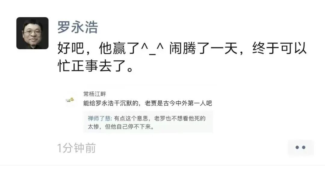 罗永浩则随后在朋友圈发文称,“好吧,他赢了”。