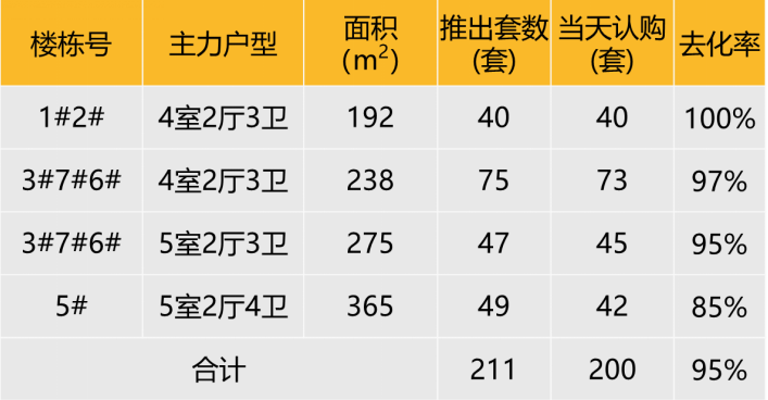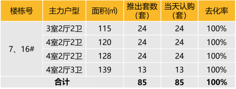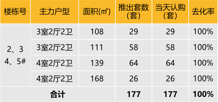 认购去化:项目吸引了351组家庭登记,中签率低至50.43%,选房当天共认购177套房源,去化率100%。