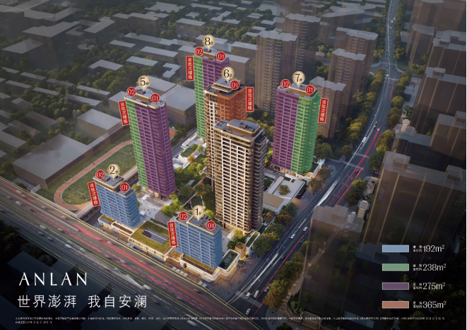 认购去化:安澜上海于12月26日首批开盘,本次共计推出211套房源,主力户型为192、238、275、365㎡四房,均价178800元/㎡,一房一价,去化率达95%。