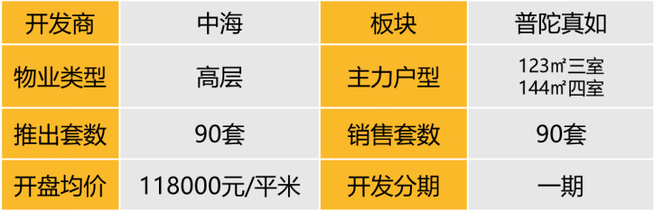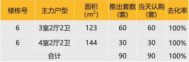 认购去化:中海环宇玖章项目于12月27日首期开盘,共推出90套房源,主力户型为123㎡三居室和144㎡四居室产品,均价118000元/㎡,一房一价,目前房源已售罄,去化率100%。