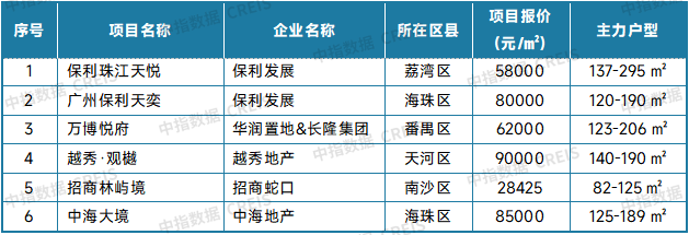 表:广州新房典型项目