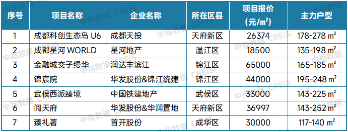 表:成都新房典型项目