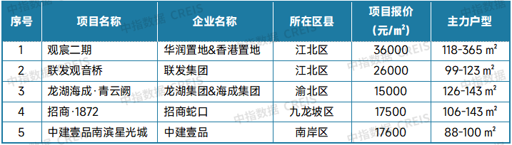 表:重庆新房典型项目