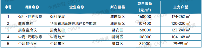 表:上海新房典型项目