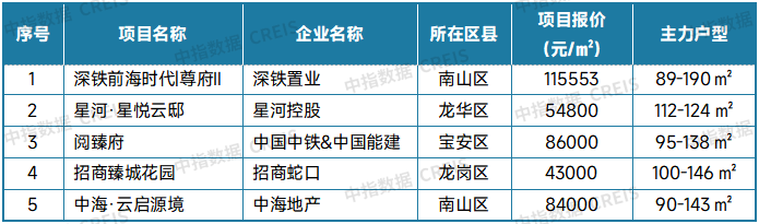 表:深圳新房典型项目