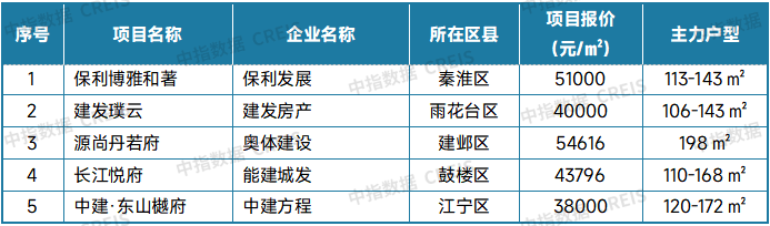 表:南京新房典型项目