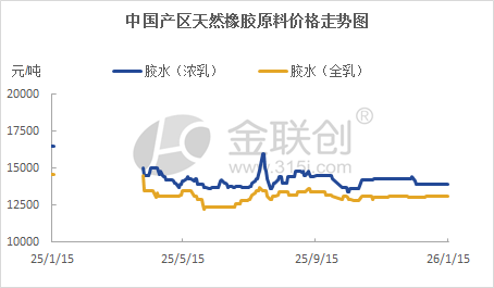 海南产区,伴随气温下降,全岛停割进程加速推进。进入本月海南产区割胶季收尾,中部和北部地区由于物候条件较差,干含较低,已不支持继续割胶。仅西南部地区零散割胶,全岛可收胶量极为稀少,听闻零星工厂尚未全面停工,胶水收购价格维持高位水平。截至1月15日,国有浓乳胶水原料收购价格参考13900元/吨,全乳胶胶水原料收购价格参考13100元/吨左右,胶水进民营厂价格鲜有听闻。