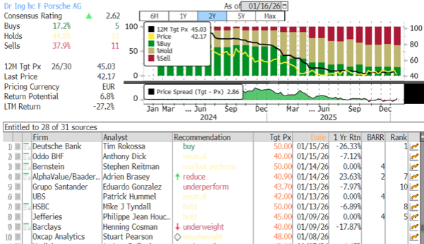 本周早些时候,Oddo BHF分析师Anthony Dick在纽约举行的德国投资研讨会上与保时捷CFO Jochen Breckner进行了交流。据彭博报道,Breckner向分析师透露,他的态度比以往“更加保守”。基于此,Dick下调了对保时捷的预期,并指出该公司正处于持续的“重大重组”之中。他强调,自IPO以来,保时捷的盈利能力一直面临压力,并预测今明两年将是该公司充满挑战的“过渡年”。
