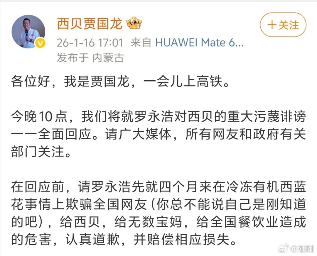 1月16日,罗永浩下午在微博发声,回应了贾国龙最近在朋友圈的炮轰。