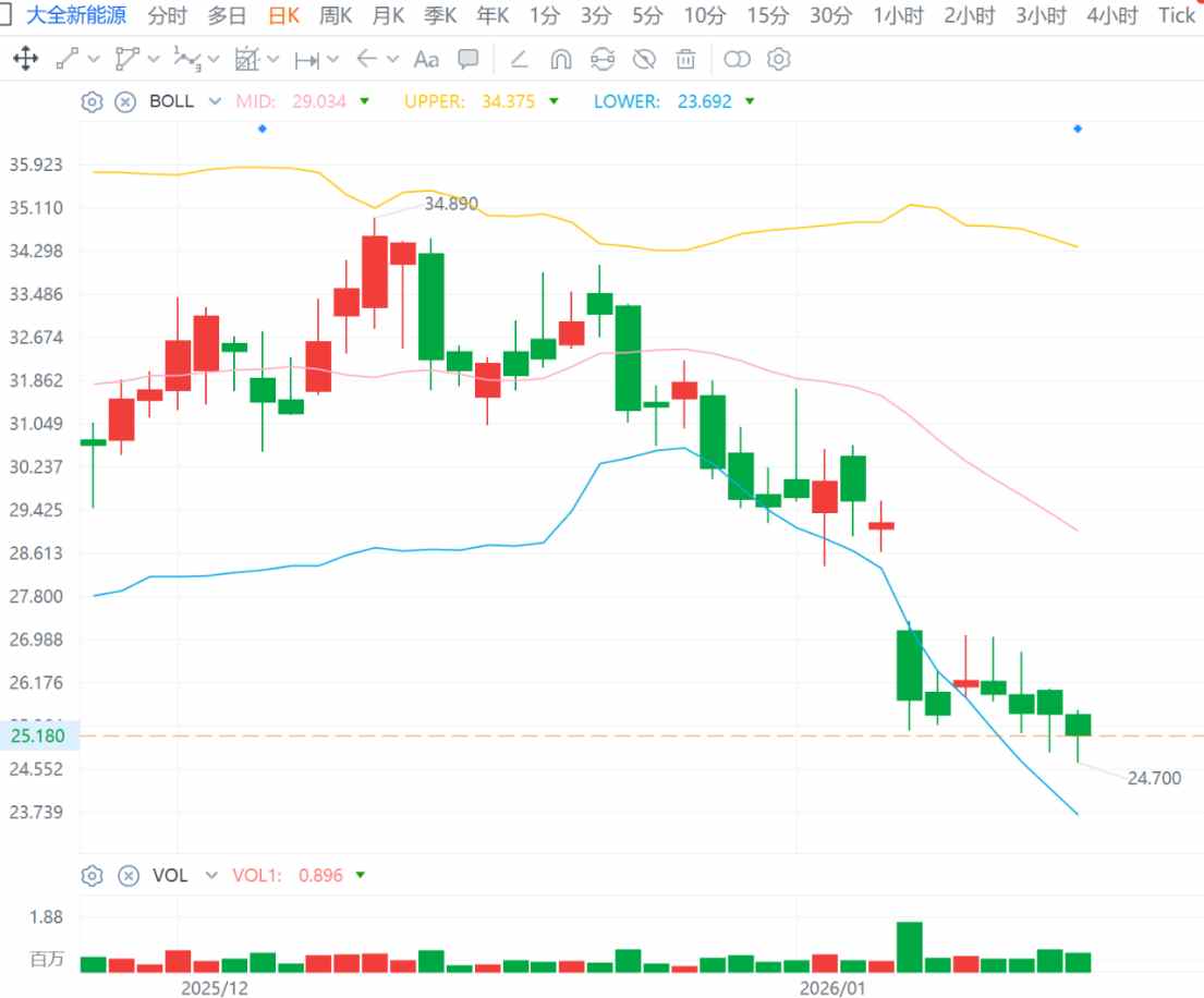在2025年经历了连续6个月的股价拉升后,大全新能源(DQ.US)最近3个月股价回落明显。