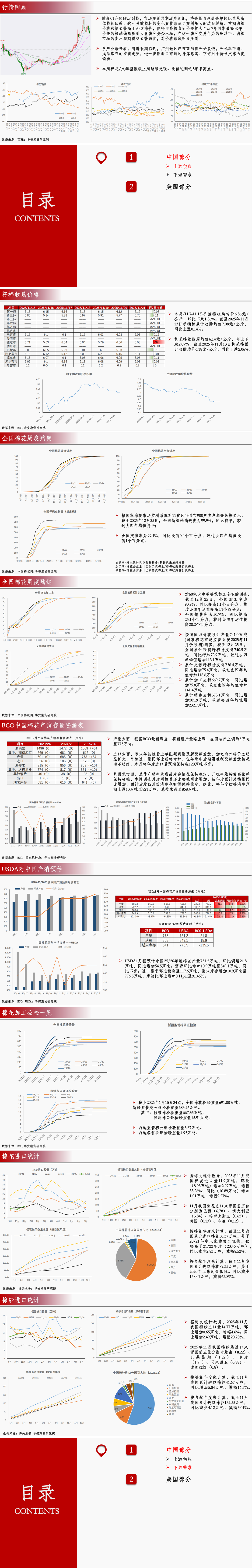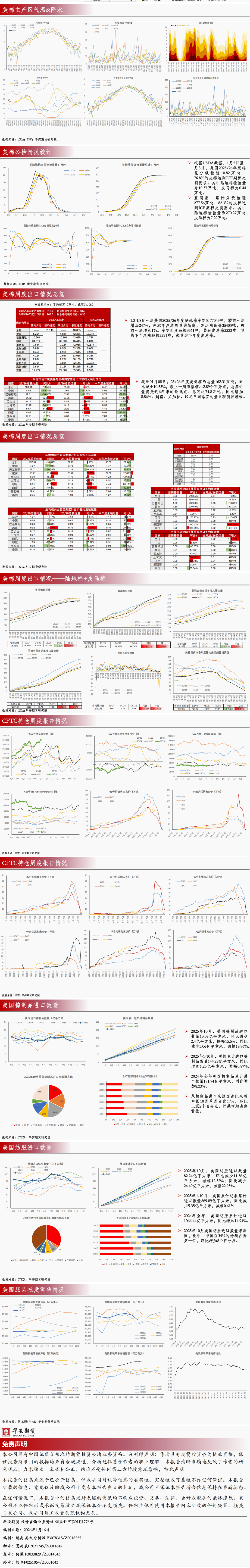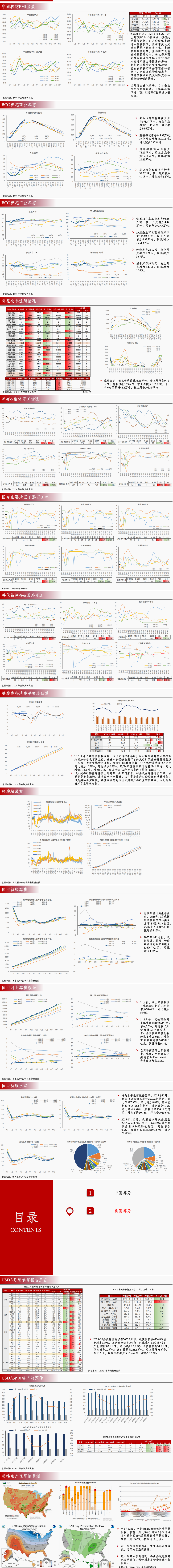 USDA1月报告中调减美棉产量,出口预期维持不变。CFTC基金净多持仓数据持续回暖,美棉止跌。截至1月8日当周,美棉累计签约162.31万吨,较去年同期水准减少10.53%。25/26年度美棉出口目标265.6万吨,较去年增加6.5万吨。USDA的出口目标高估了美棉的实际签约动能,也忽视了核心买家缺位、增长市场瓶颈与替代竞争加剧的三重约束。结合当前签约的绝对低位与市场格局,25/26年度美棉出口目标的下调具备充分的现实依据。
