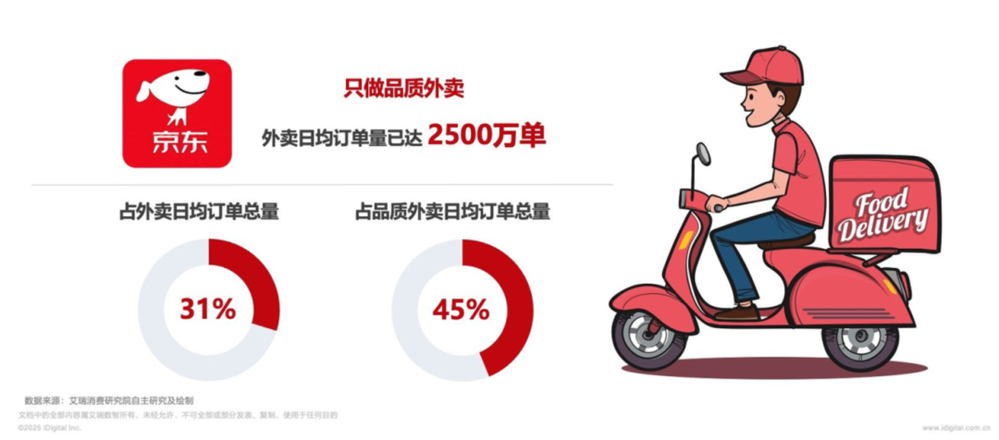 新旧势力激进猛攻的结果,首先反映在外卖订单的变化上。2025年5月至8月,整个外卖市场的日订单规模从1亿左右飙升至2亿以上,增长幅度惊人。其中,淘宝闪购的日订单峰值达到1.2亿单。京东外卖也以“品质堂食外卖”为核心定位,日均订单量突破2500万单,迅速占据一席之地。