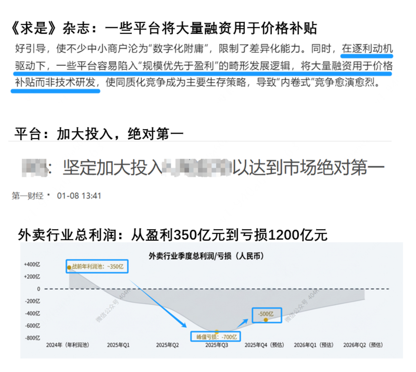 高盛等投行报告分析认为,外卖行业的年度总利润已经从盈利350亿元,至如今的亏损1200亿元。这仅是2025年Q3、Q4两个季度。