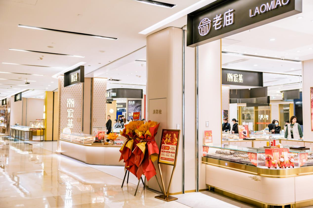 项目将二楼近1500平方米的区域集中规划为全新的黄金珠宝区。这里不仅引入了老凤祥、六福珠宝、老庙黄金、潮宏基、周六福等共22家一线品牌,更关键的是通过统一的场景化设计,打造出一个集“精致美学”与“沉浸式体验”于一体的“新光场”。