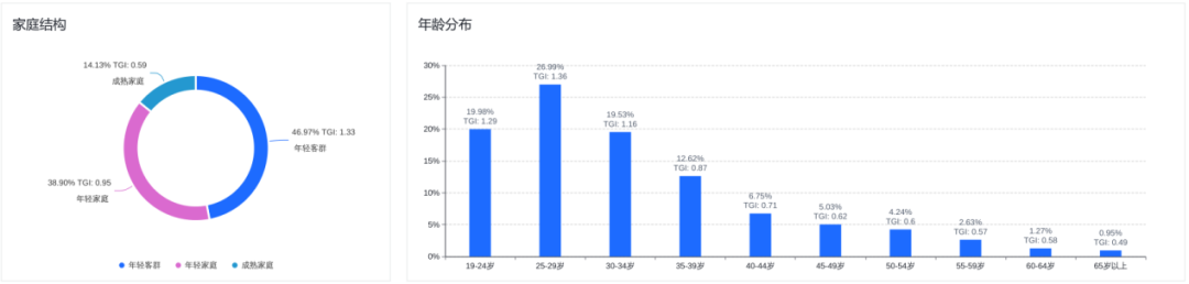 从客群画像看,项目对区域核心消费力的吸附力不容分说。项目周边3公里内,19-34岁的年轻客群成为主力,占比高达66.5%,且近半数属于“年轻家庭”结构,这得益于周边强大的产业人口和办公白领客群支撑。年轻客群与中产及以上家庭占比高于城市均值,构成了消费力充沛的“基本盘”。