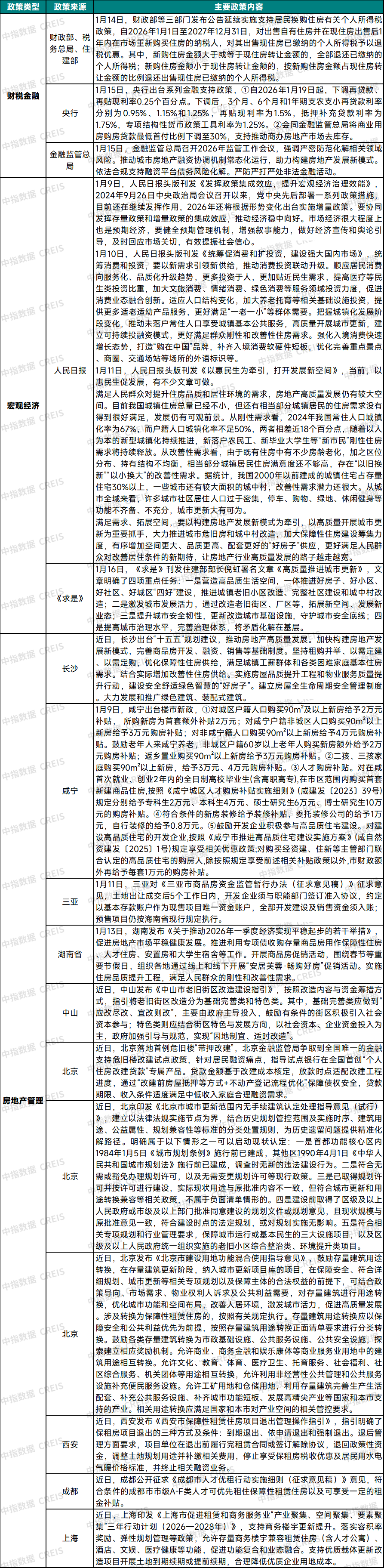 表:1月12日至1月18日房地产市场重点政策及事件汇总