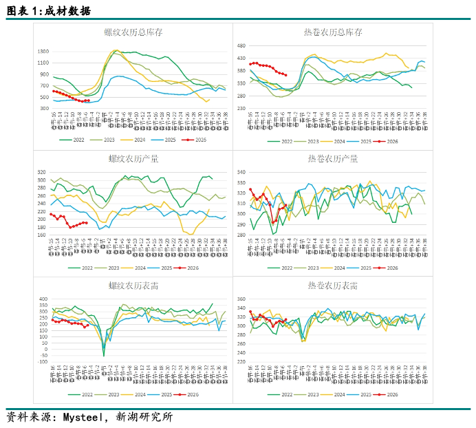 本周黑色系走势震荡偏弱,主要是受炉料价格拖累。宏观和消息面来看,资金情绪随着前期流动性宽松预期兑现后有所降温,上周焦煤由于榆林煤矿产能核减消息刺激走强,到本周交易逻辑从前期低估值补涨转向寻找现实需求支撑;产业逻辑来看,本周钢厂复产进度暂缓,年底高炉常规年检增加、铁水再度转降,实际铁水低于此前市场预期的线性复产情况,炉料刚需承压、刺激盘面利润修复,成材周内价格表现反而有支撑。