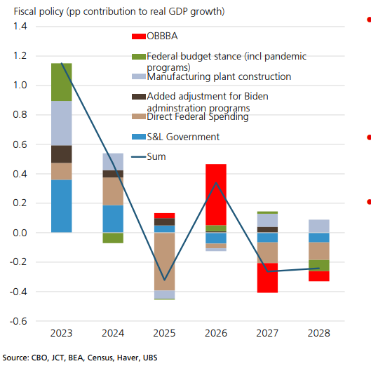 OBBBA将在2026年提供阶段性支撑。瑞银预计,约550亿美元的退税将在二季度集中释放,对当季消费形成明显提振。