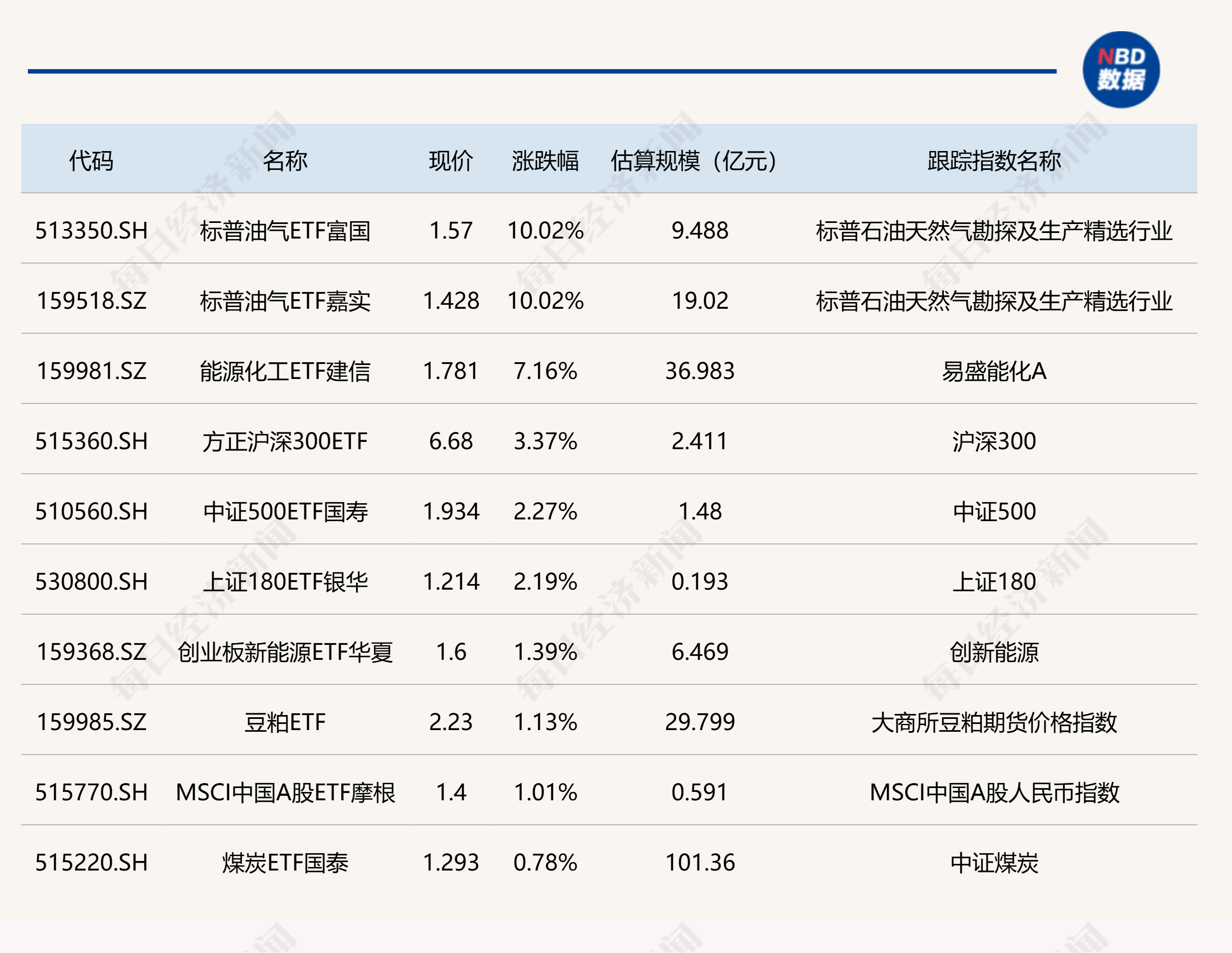 ETF涨跌幅方面,标普油气相关ETF涨停。