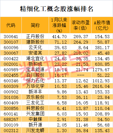 今年以来,这些概念股平均下跌9.47%,其中18股逆势上涨,正丹股份、建新股份、云天化、安诺其、湖北宜化、新和成累计涨幅超20%。