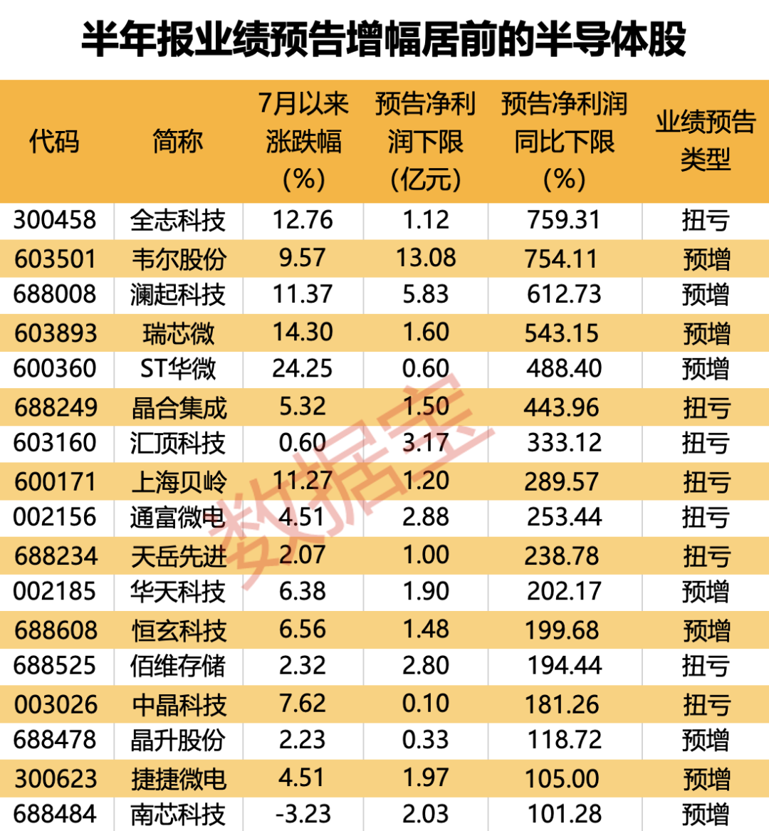 随着半年报窗口期打开,近期有较多半导体上市公司公布今年半年度业绩预告。
