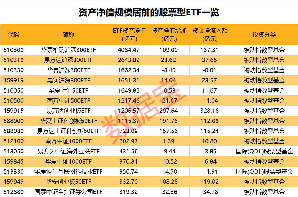 易方达创业板ETF和华夏上证科创板50ETF本周获得资金大手笔加仓,新进千亿规模ETF俱乐部。